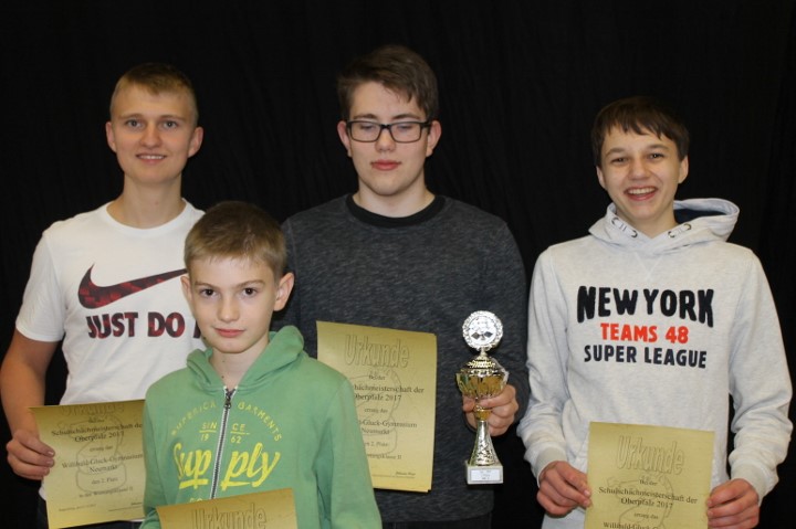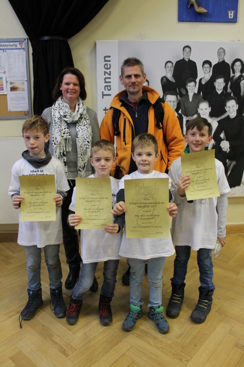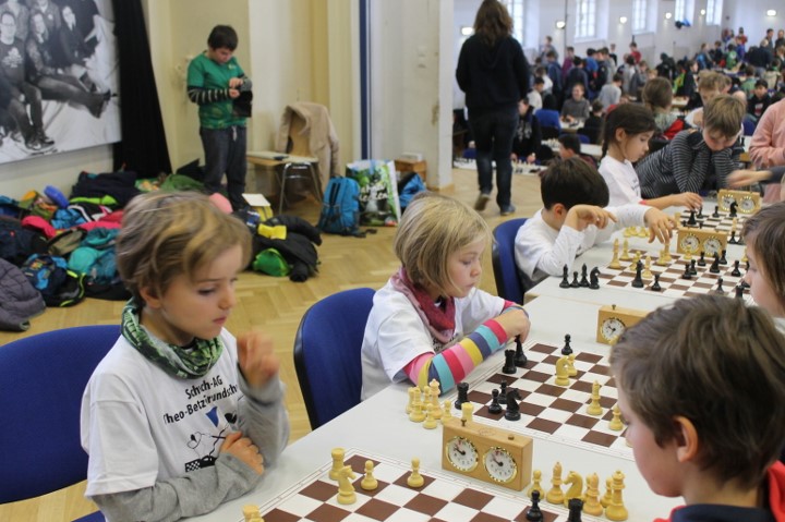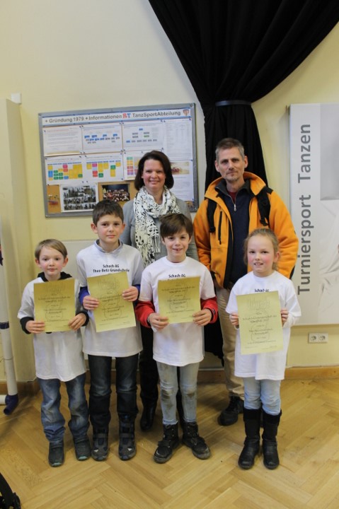 Bei den Oberpfälzer Schulschachmeisterschaften in der RT-Halle in Regensburg waren wieder Mannschaften des Willibald-Gluck-Gymnasiums, der Theo-Betz-Schule sowie der Mädchenrealschule am Start. Die TBS stellte in der WK Grundschule mit fünf Teams fast ein Viertel des Teilnehmerfelds und diesmal gelang der große Wurf. Die erste Mannschaft mit einem SKN-Trio gab nur in der zweiten Runde ein Unentschieden ab und hielt sich ansonsten schadlos. Somit lag man mit 13:1 Punkten am Ende satte drei Zähler vor den Verfolgern und es gab den ersten Titel für die TBS. Starke neun Punkte erzielten jeweils Team II und III auf den Rängen fünf und sieben, wobei das direkte Duell an die Dritte gegangen war. Zudem gab es die Plätze 18 und 19 für TBS IV und V mit jeweils fünf Zählern.