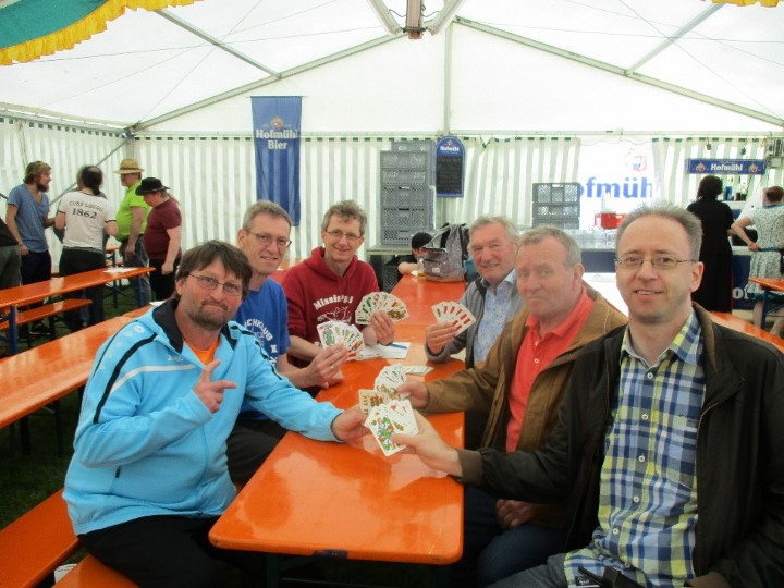 Im Schafkopfteil sollten wir uns schadlos halten, aber die an fünf Tischen herausgespielten Platzierungen (3x 1. Platz, 1x 2. Platz und 1x 3. Platz), die zum Sieg in dieser Disziplin reichten, brachten uns nichts im Hinblick auf die Gesamtwertung. Hier landete der SK Neumarkt auf dem 2. Platz hinter Tarrasch, aber vor der ‚Bunten Truppe‘ und den Zaboranern. Doch nächstes Jahr – so der Organisator Stefan Schmid – werde alles anders, sprich besser für ihn und seinen Verein laufen. Vamos a ver – warten wir’s ab! Spaß hat es aber allen Beteiligten gemacht.