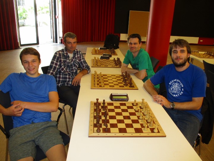 Danach sah es auch gegen die an #3 gesetzten Höchstädter ausgezeichnet aus. Lorenz sorgte für die frühe Führung und Sebastian konnte einen Bauern erobern. Im Doppelturmendspiel sah er aber keinen Gewinnplan und war angesichts von drei gegen sieben Minuten mit einem Remis zufrieden. Kevin übersah eine gute Gelegenheit seines Kontrahenten und musste die Waffen strecken. Nun lag es an Jozef, der die bessere Zeit und eine Quali mehr hatte. Doch dann ließen zwei Einsteller in Folge den Traum vom perfekten Auftakt platzen.